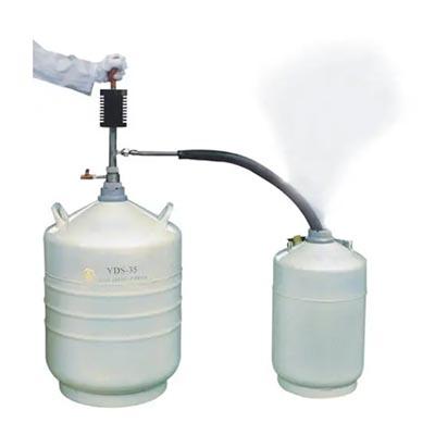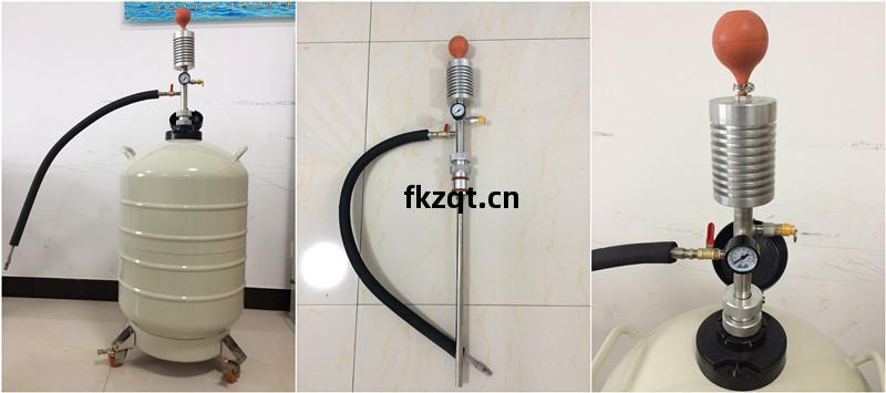 該(gai)產(chan)品依(yi)靠操作(zuo)者(zhe)手(shou)捏(nie)吸液(ye)球(qiu)(ZYB-5型),使液(ye)氮(dan)容器(qi)內貯存(cun)的液(ye)氮(dan)少量(liang)產生(sheng)氣化。由(you)於(yu)液(ye)氮(dan)的氣液體積(ji)比(bi)較大,氣化後(hou)的(de)氮(dan)氣在密(mi)封(feng)的容器(qi)內對盛(sheng)裝的(de)液(ye)氮(dan)增(zeng)壓,促(cu)使容(rong)器(qi)內盛裝的(de)液(ye)氮(dan)排放出(chu)來,達(da)到(dao)對(dui)其(qi)它(ta)容(rong)器(qi)補(bu)充(chong)液氮(dan)的目的。它具(ju)有(you)操作(zuo)方(fang)便可靠、排(pai)液(ye)過(guo)程中(zhong)液氮(dan)的蒸(zheng)發損(sun)失低(di)的優(you)點(dian)。
